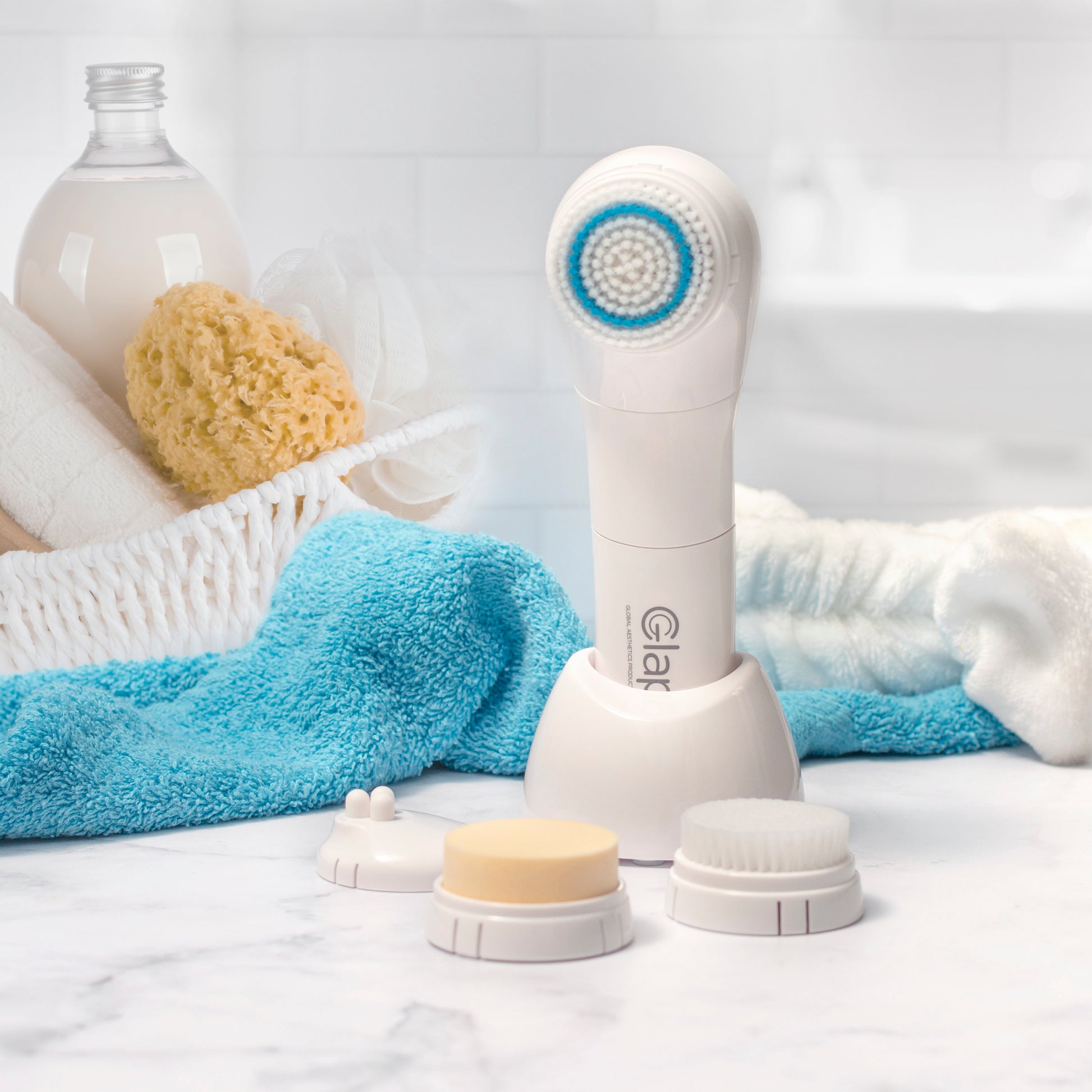 2. Higienice con Emulsión de Limpieza o un producto acorde al biotipo cutáneo. Se puede aplicar con el cepillo de dermoabrasión o el cabezal de piel sensible o con la esponja en forma circular. Retirar el excedente con abundante agua.