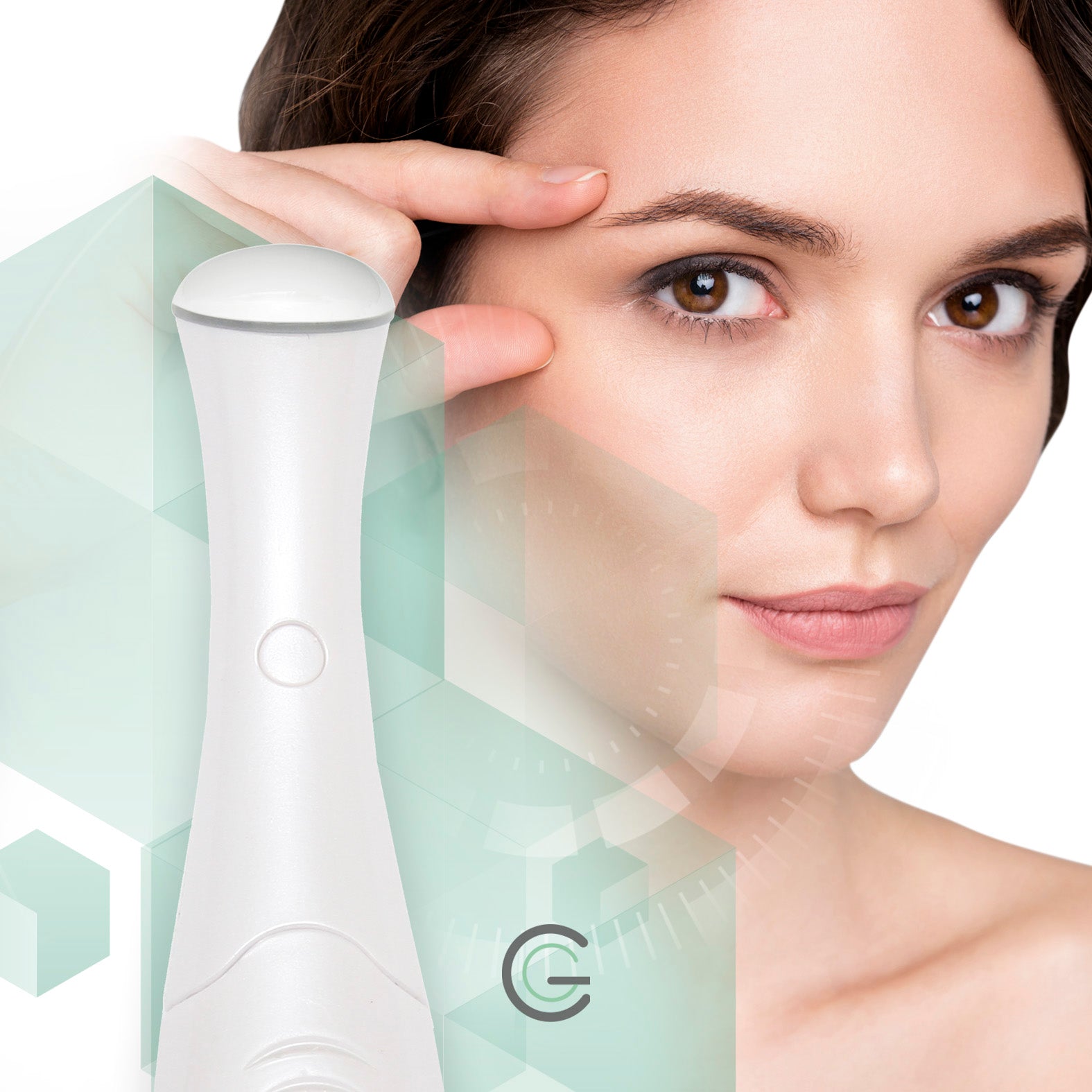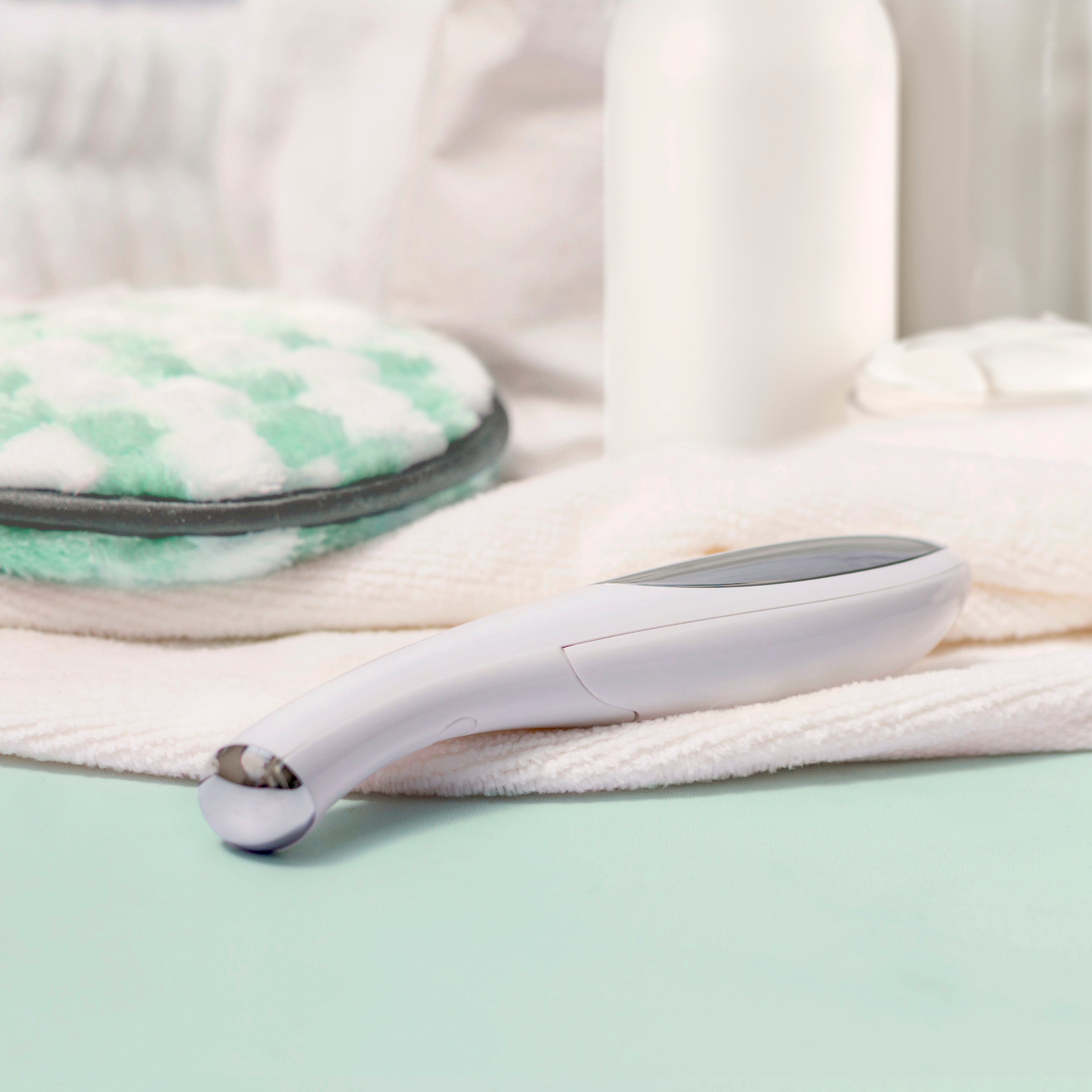 3. Aplicar una pequeña cantidad de: Gel, Crema o Gel cream para párpados y proceder a realizar masajes en la zona con el dispositivo. Trabajar suavemente con movimientos circulares sobre líneas de expresión, ojeras y bolsas. El extremo metálico y la forma redondeada del cabezal permitirán un muy buen masaje y la descongestión de la zona ocular.